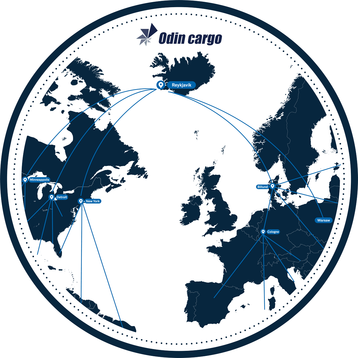 Gegnum samstarf við stór flugfélög eins og Delta Cargo, SAS Cargo, Ethiopian og UPS air Cargo ofl. getum við boðið tengingar við yfir 400 flugvelli um allan heim, í Bandaríkjunum, Canada og Asíu.